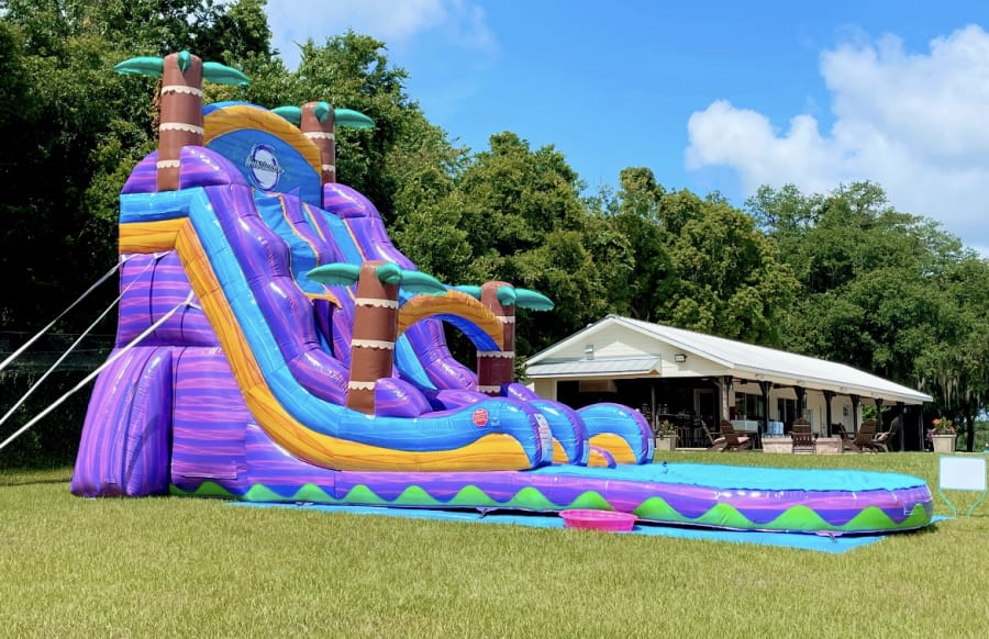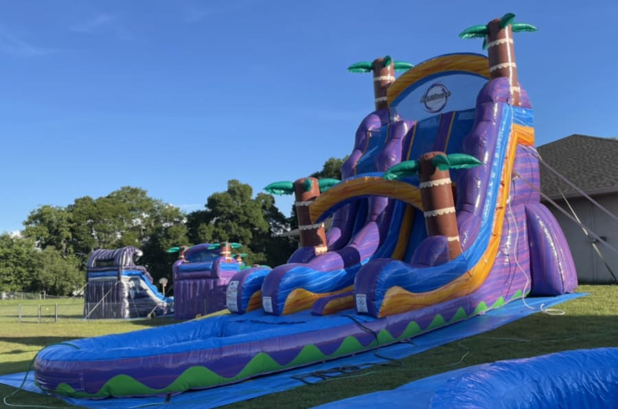 The Tropical Hurricane 22 foot dual lane is a towering, eye-catching water slide built for maximum fun. This 22 ft tall dual lane tropical hurricane water slide delivers thrilling rides, fast splashes, and a deep pool finish. Perfect for parties, events, and rentals that demand a show-stopping centerpiece. 💦